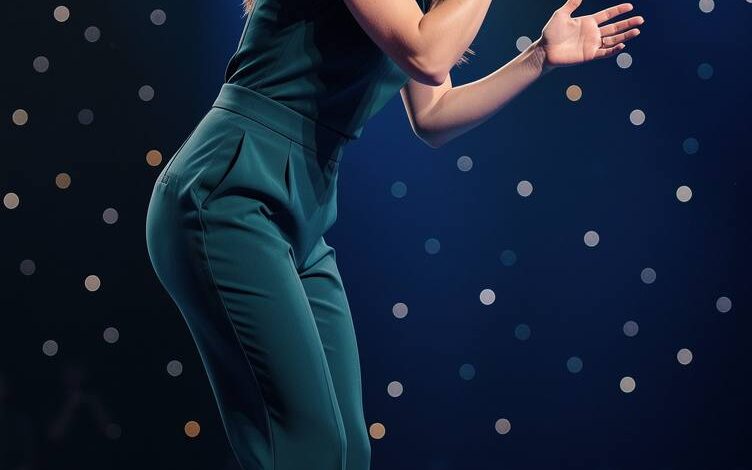 Dressed in a simple dark green outfit, the singer stood alone under a row of blue spotlights that illuminated the stage. The lighting created a quiet and intimate atmosphere as the room waited for the performance to begin. From the first note, it became clear that the song carried a deeply personal meaning.