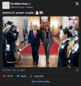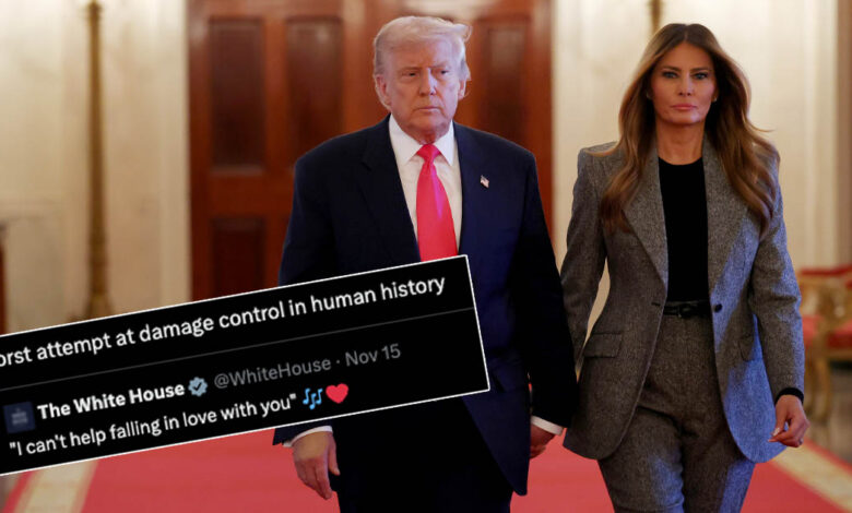 Donald and Melania Trump aren’t usually very affectionate toward each other in public. However, last week they both kissed on stage, and the official White House X account posted a picture of them holding hands. Still, social media went into a meltdown over the post – calling it “the worst attempt at damage control.”