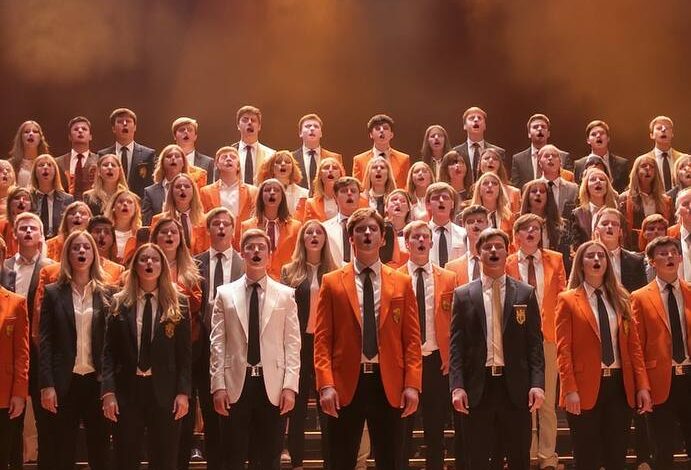 The stage filled with energy as a large high school choir stepped into formation. Dressed in black, white, and orange blazers, their presence was already powerful before they even sang a note.