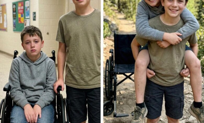 As we left the office, the smug look on Mr. Dunn’s face had vanished, replaced by a stunned, hollow silence. In the hallway, Sam was waiting in his wheelchair. The second the two boys saw each other, the gravity of the room lifted. They didn’t care about scholarships or military honors; they were just two kids who had shared a mountain. Leo ran to him, and they laughed about the “trouble” they had caused, their bond forged in the mud of that six-mile trail.