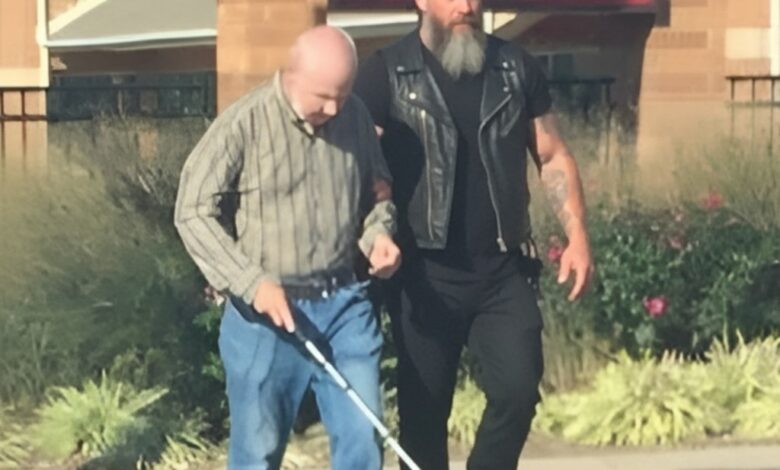 The biker spent every Tuesday walking the blind stranger across the parking lot for eight months before anyone knew why