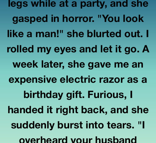 I sat there, stunned. I had been so focused on the external slight—the razor, the legs, the judgment—that I had completely missed the private battle my husband was fighting to save my peace of mind. My mother, with her own narrow view of what constitutes a problem, had catastrophically misinterpreted his desperation.