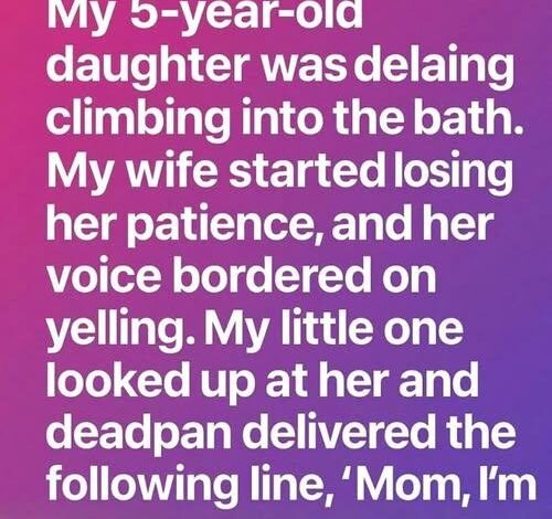 The room went quiet. Even the tension seemed to pause. My wife’s stern look softened into a reluctant smile, and I had to hide a laugh behind my hand. In that moment, her innocent honesty cut straight through our frustration. What could have turned into a struggle over bath time became instead a gentle lesson in patience—and a good dose of humor.