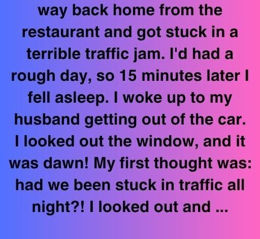We were halfway home from dinner when everything came to a stop. Not a slowdown — a full, unmoving standstill. A line of red taillights stretched endlessly ahead, glowing like a trail of embers. Engines idled in frustration, the air thick with impatience. I leaned my head against the window, the glass cool against my temple. The day had already been long and heavy — one of those that drain you in ways sleep can’t fix. Ten minutes passed. Then twenty. The stillness pressed down, and before I knew it, exhaustion won. I closed my eyes “just for a minute.”