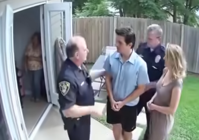 Neighbors gathered on sidewalks, whispering, their faces half-illuminated by the glow of emergency lights. What had begun as an ordinary barbecue was dissolving into something tense, something almost surreal.