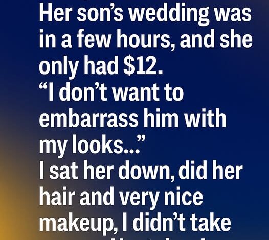 The woman walked into my salon clutching her purse like it was the only thing keeping her upright. Her eyes were red, her shoulders hunched, and her voice shook when she spoke. She told me her son was getting married in a few hours. She told me she had twelve dollars. And then, barely above a whisper, she said the words that stayed with me long after she left: “I don’t want to embarrass him by how I look.”