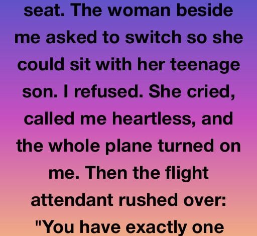 The flight attendant arrived like a referee. “Ma’am, you have one minute to decide or we’ll have to escalate.”