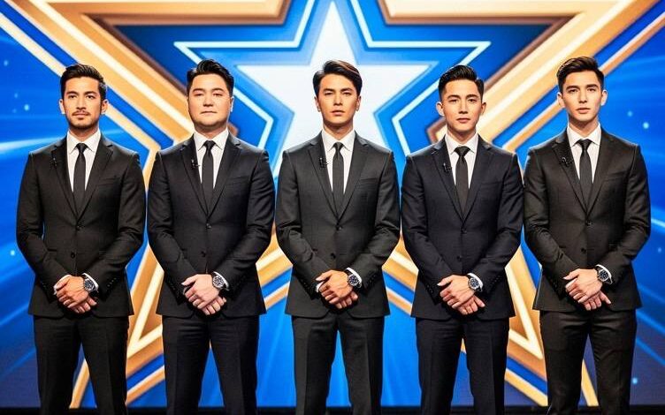 When six men walked onto the stage dressed in identical black suits, the room felt oddly restrained. No props, no music cues, no exaggerated introductions. Just calm posture, quiet faces, and a sense that something was being held back. The judges watched closely, unsure whether this would be a corporate parody or something entirely different.