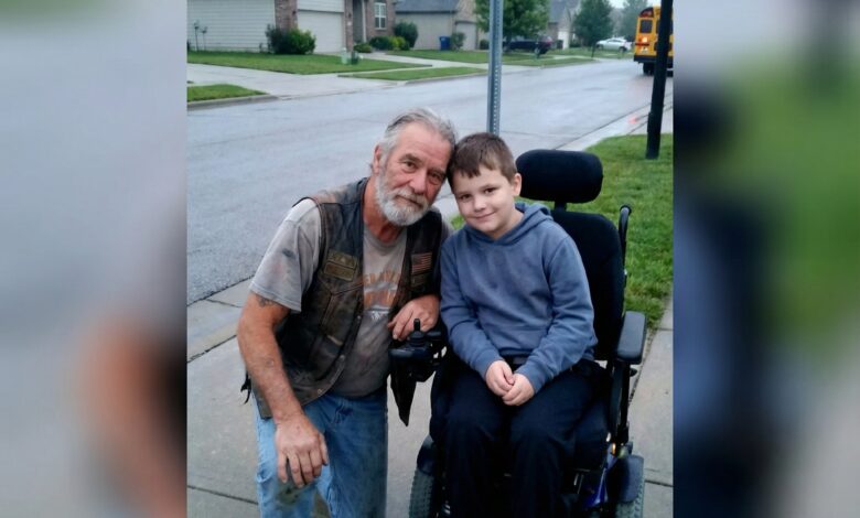 This scary biker waits at bus stop daily with my paralyzed son because other kids bully him. They even recording my son crying and posting it online with the caption “watch the cripple have a meltdown.”