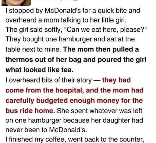 I was exhausted when I walked into McDonald’s that night — moving more out of routine than energy. That’s when I noticed them: a mother in a thin coat, her clothing tired from too many seasons, and a little girl searching the room with the kind of hope children try to hide when they know it might not be rewarded. One small order was placed. Then came a soft request, followed by the kind of gentle but unyielding no that poverty forces people to swallow.