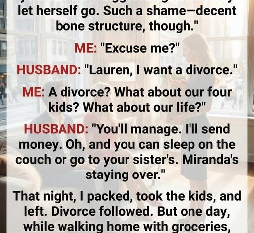 ME: “A divorce? What about our four kids? What about our life?” HUSBAND: “You’ll manage. I’ll send money. Oh, and you can sleep on the couch or go to your sister’s. Miranda’s staying over.”That night, I packed what I could, gathered the kids, and walked out of the house I had built with love and effort for over a decade. The divorce soon followed, bringing confusion, exhaustion, and fear—but also a strange clarity. I promised myself that the disrespect I experienced that day would be the last time anyone diminished my worth. In the quiet moments after the children fell asleep, I began to rebuild a version of myself that I had neglected while trying to hold together a marriage that had already crumbled.