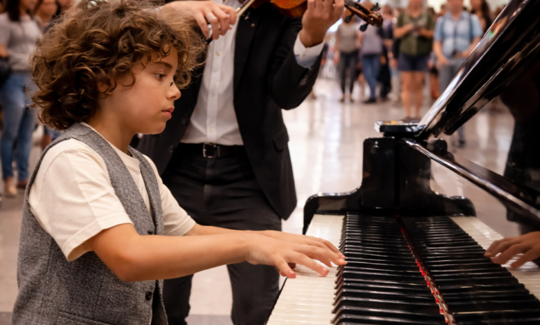 A young boy sat down at a public piano in the middle of a crowded terminal. At first glance, it seemed like just another casual moment — a child exploring an instrument while travelers hurried past.