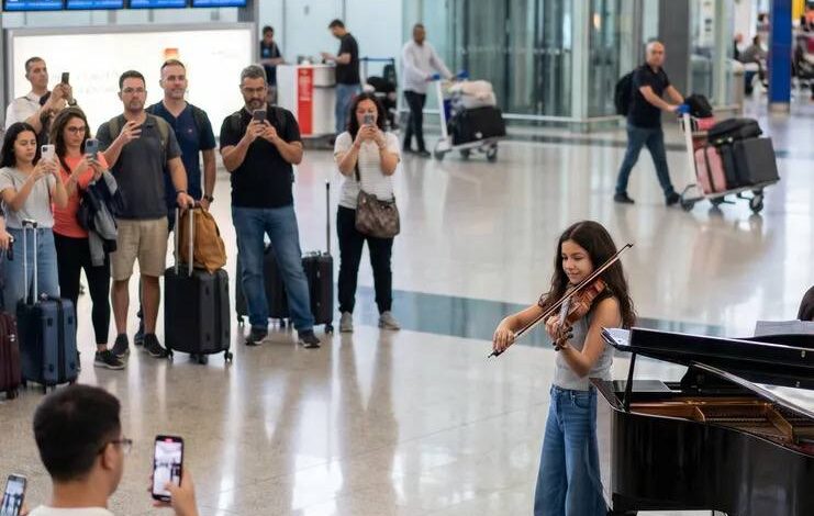 Young Violinist Captivates Airport Crowd With Remarkable Live Performance